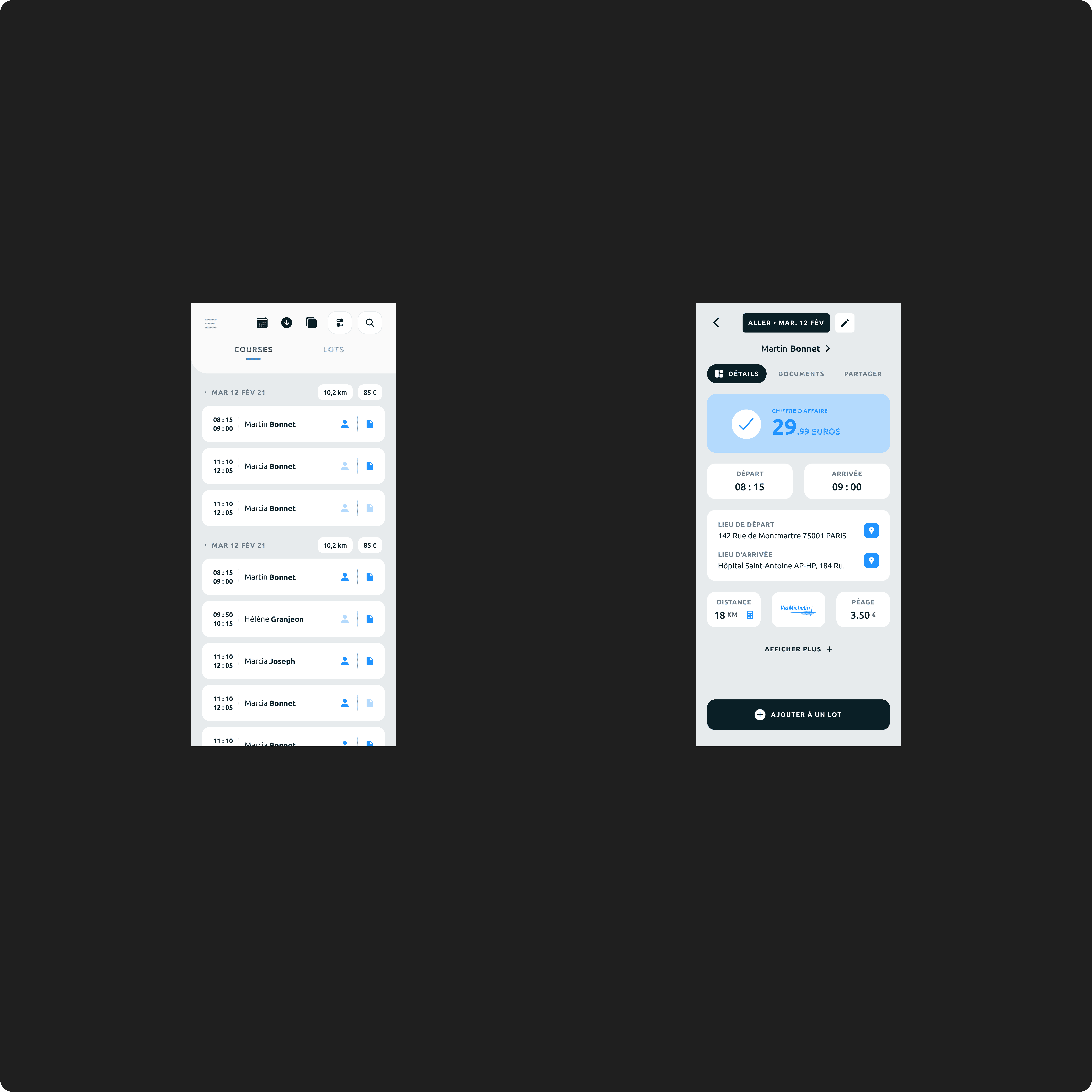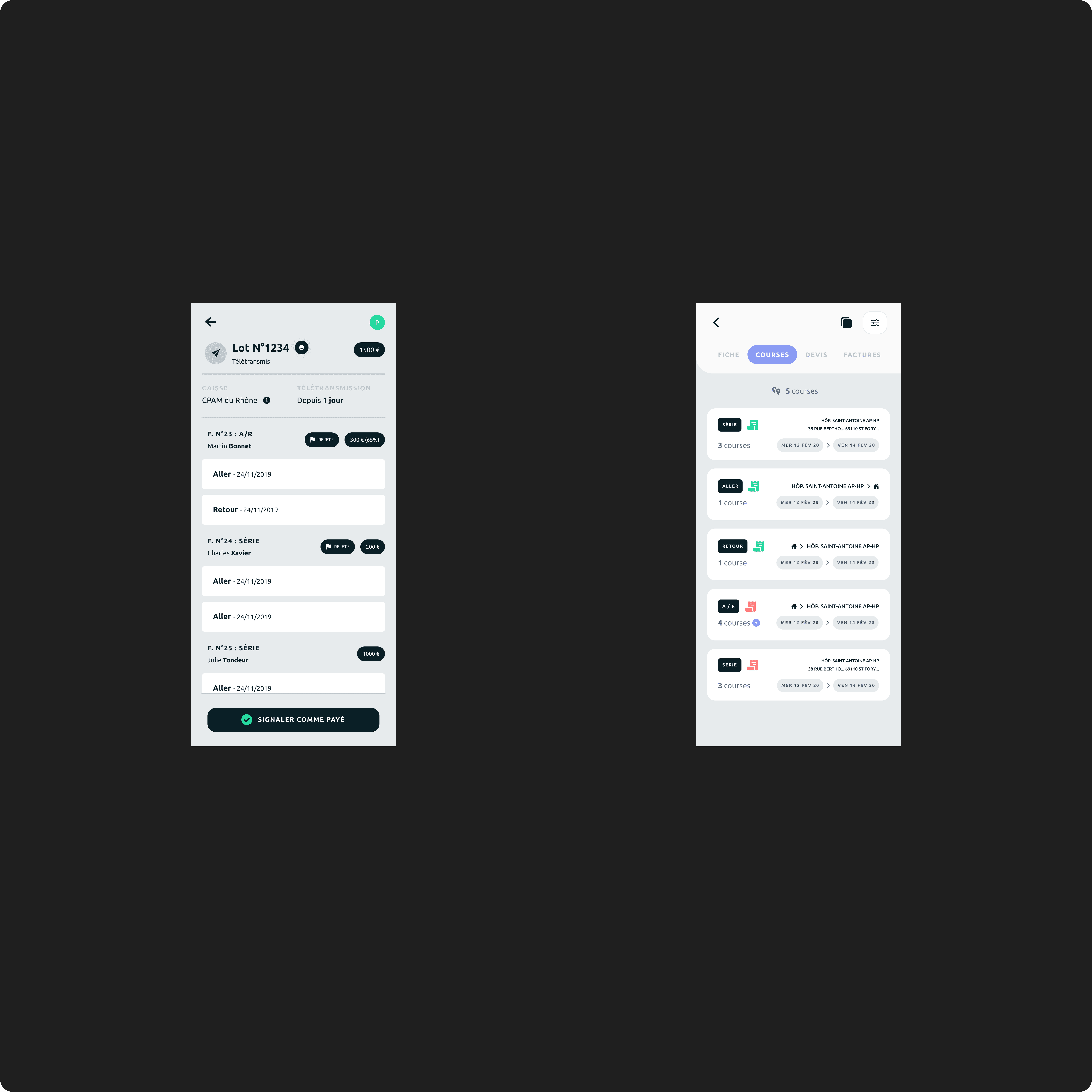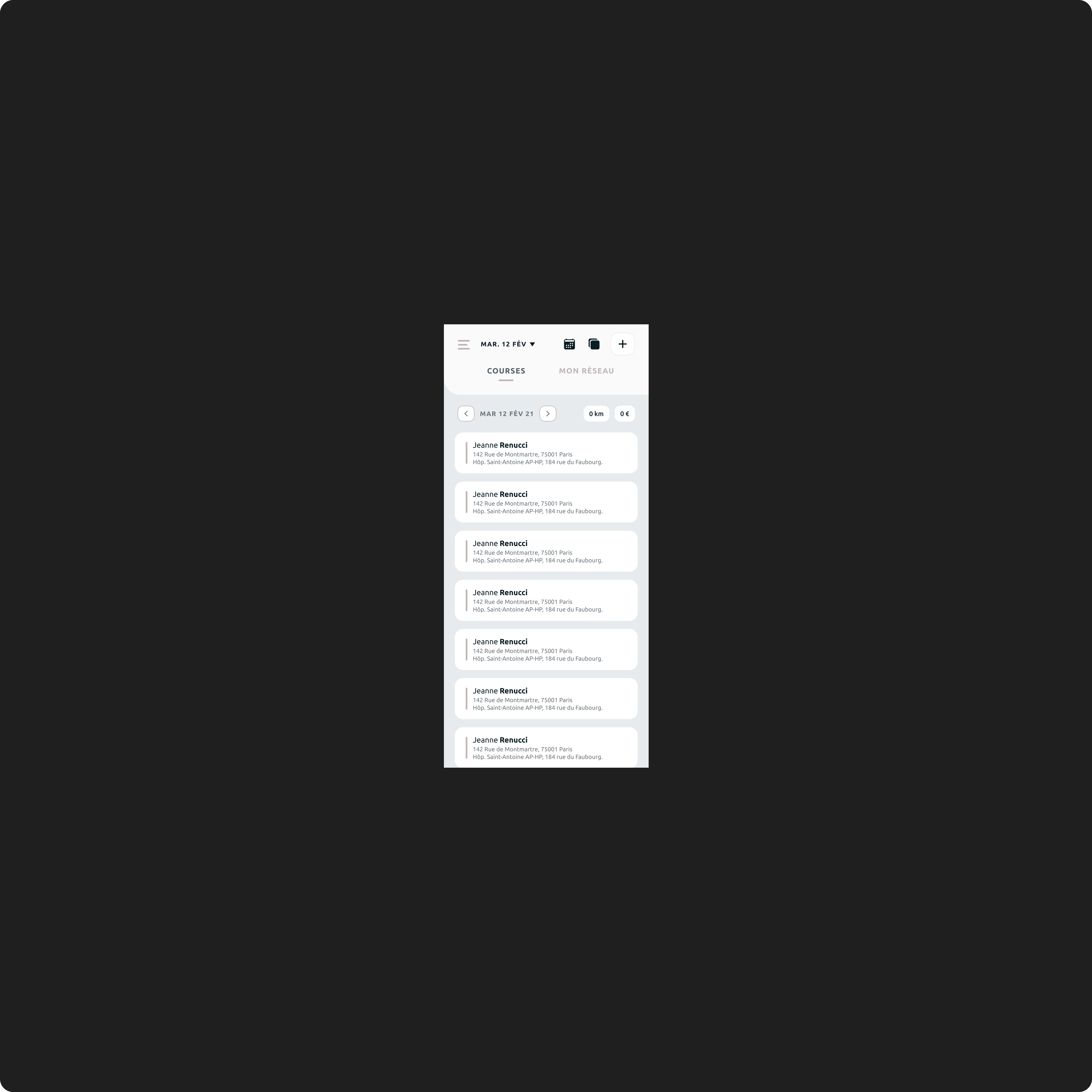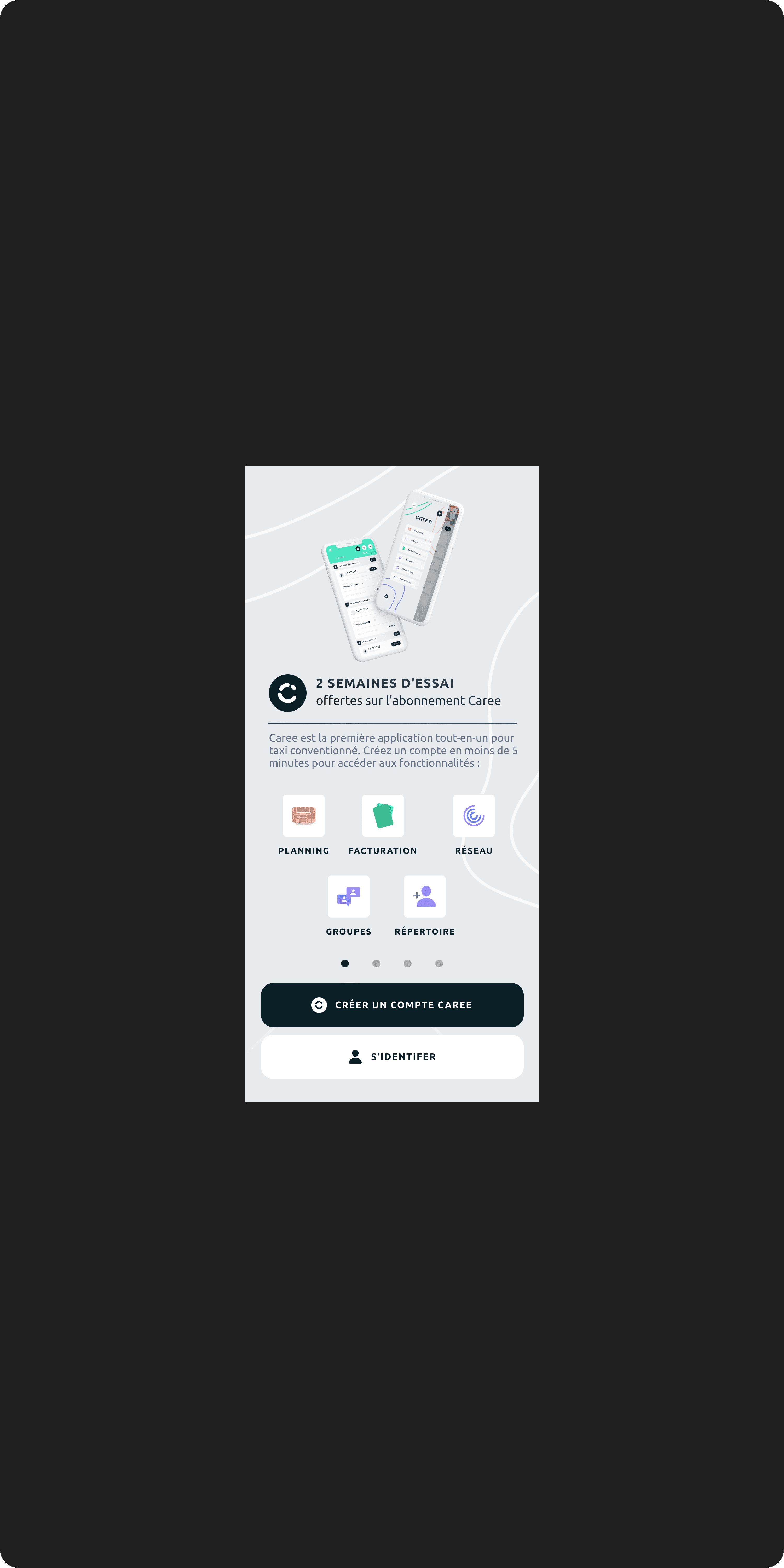 Caree is a mobile application designed for contracted medical cab drivers (taxis conventionnés) to streamline their daily operations — from document management to billing and scheduling. These professionals often rely on a patchwork of tools, making coordination difficult and time-consuming. The mission was to build a centralized, intuitive B2B solution that simplifies administrative processes, especially the complex steps involved in telepayment with national health insurance.