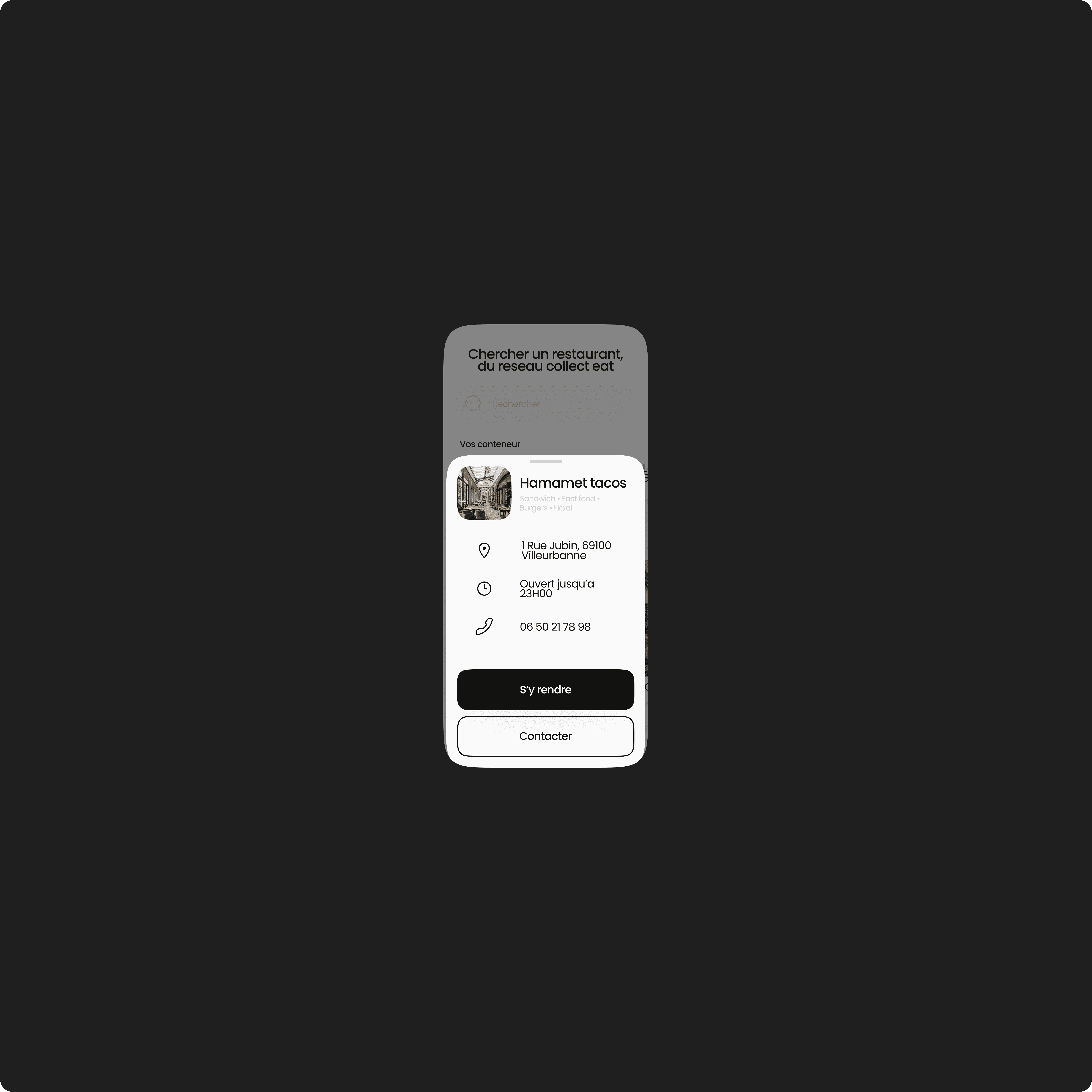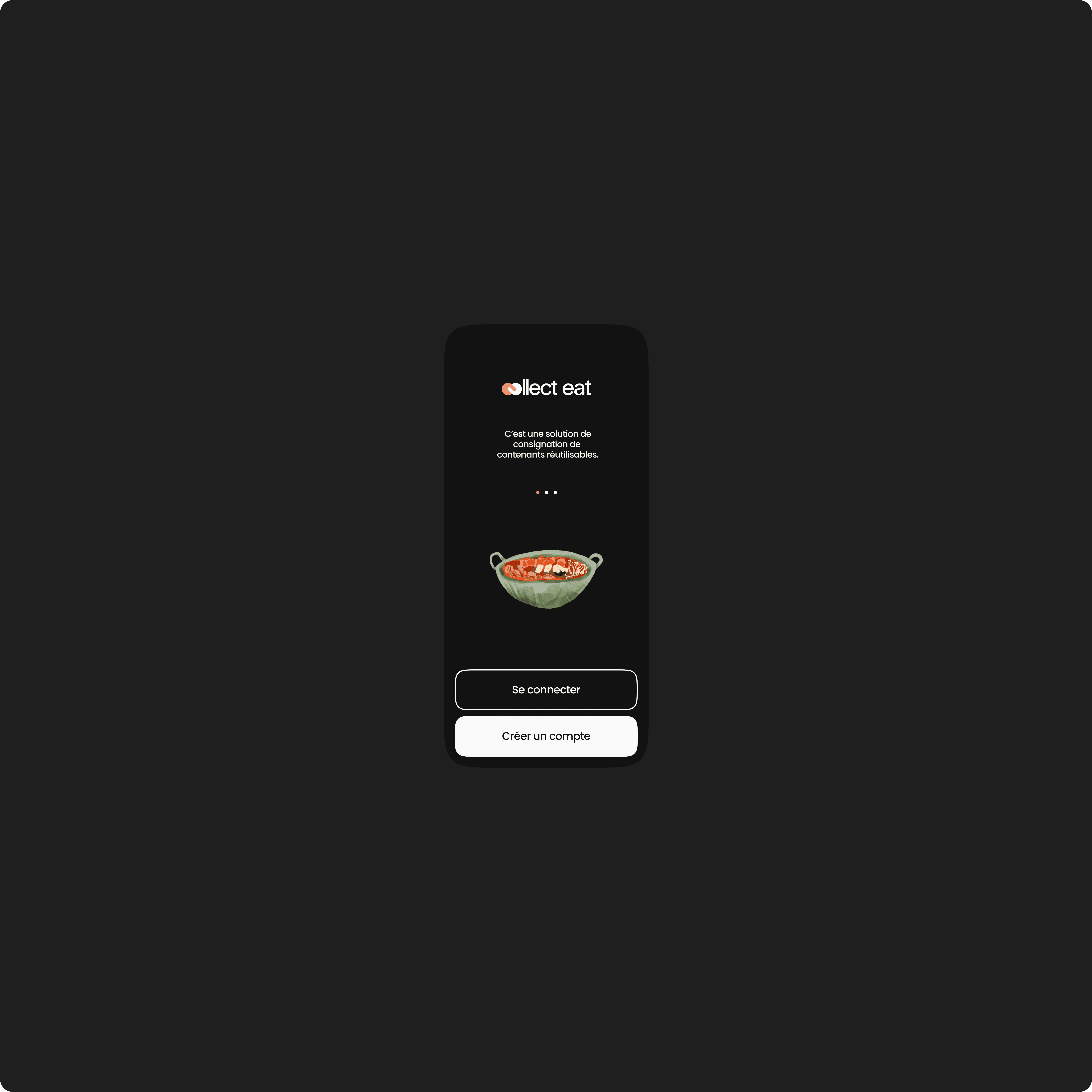 Collect Eat is a mobile application designed to promote sustainable habits in the food industry by offering a free and reusable container system. Users can borrow returnable containers from their favorite restaurants and return or exchange them across participating locations. The goal was to build a B2C solution from scratch that made the circular economy accessible, frictionless, and easy to adopt — both for users and partner restaurants.
