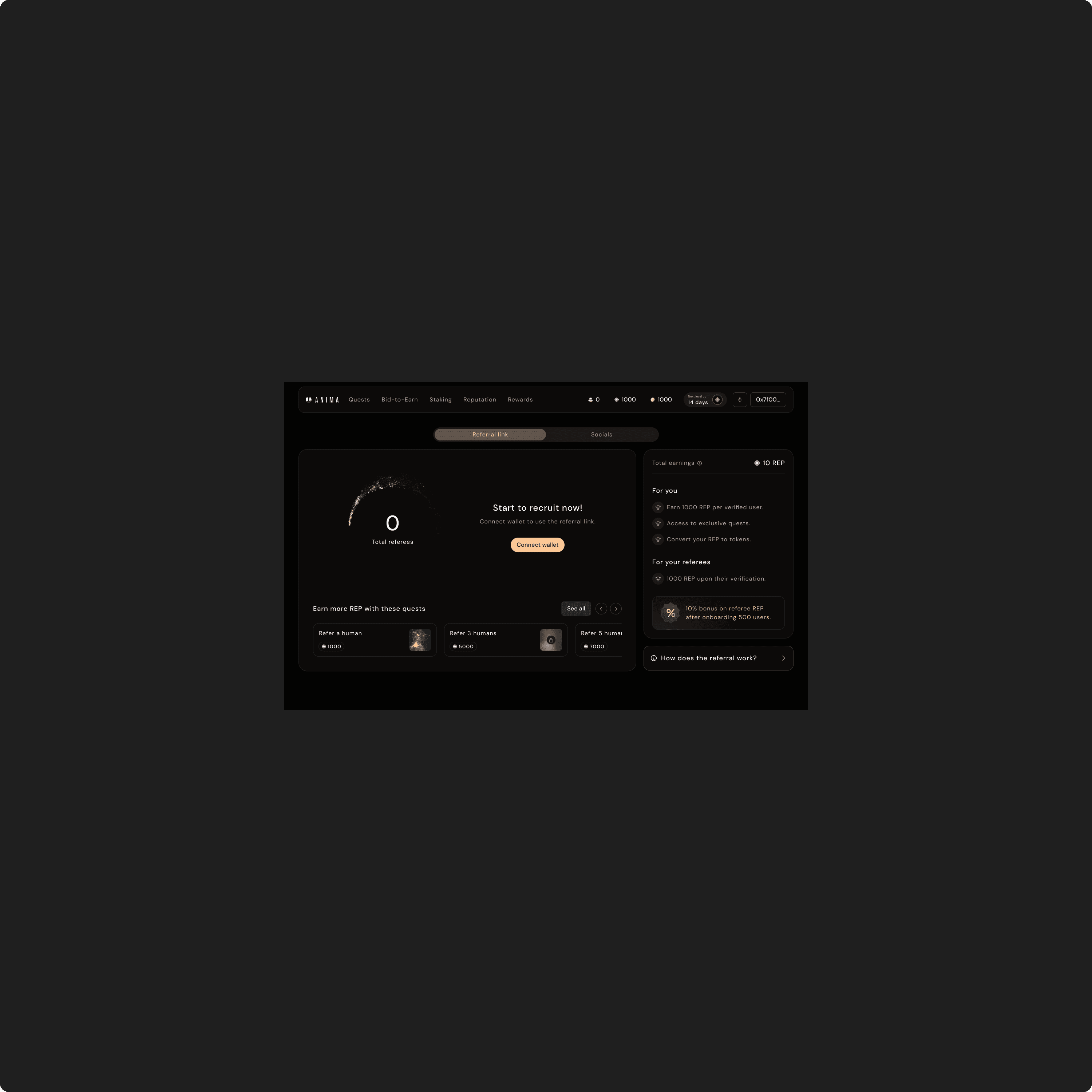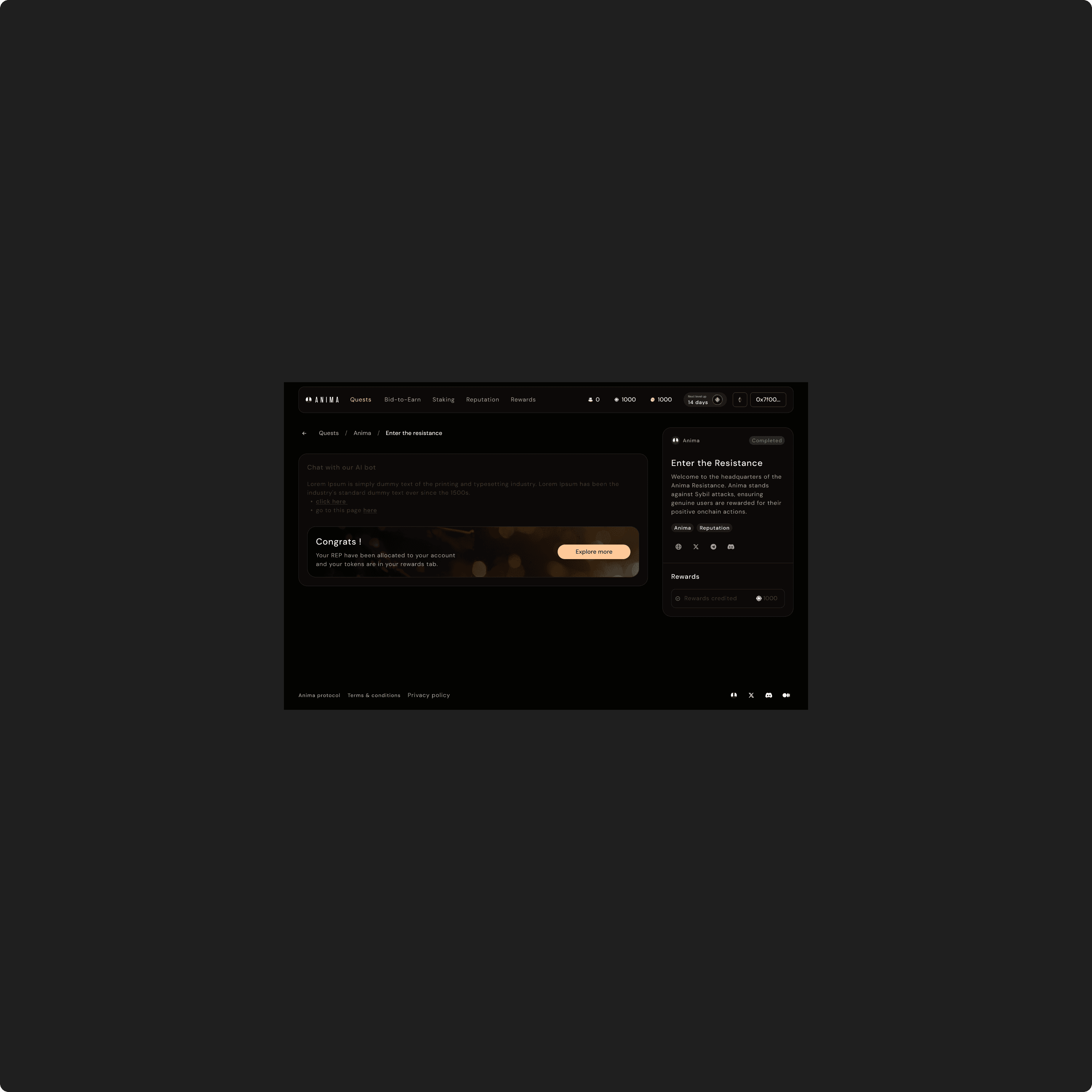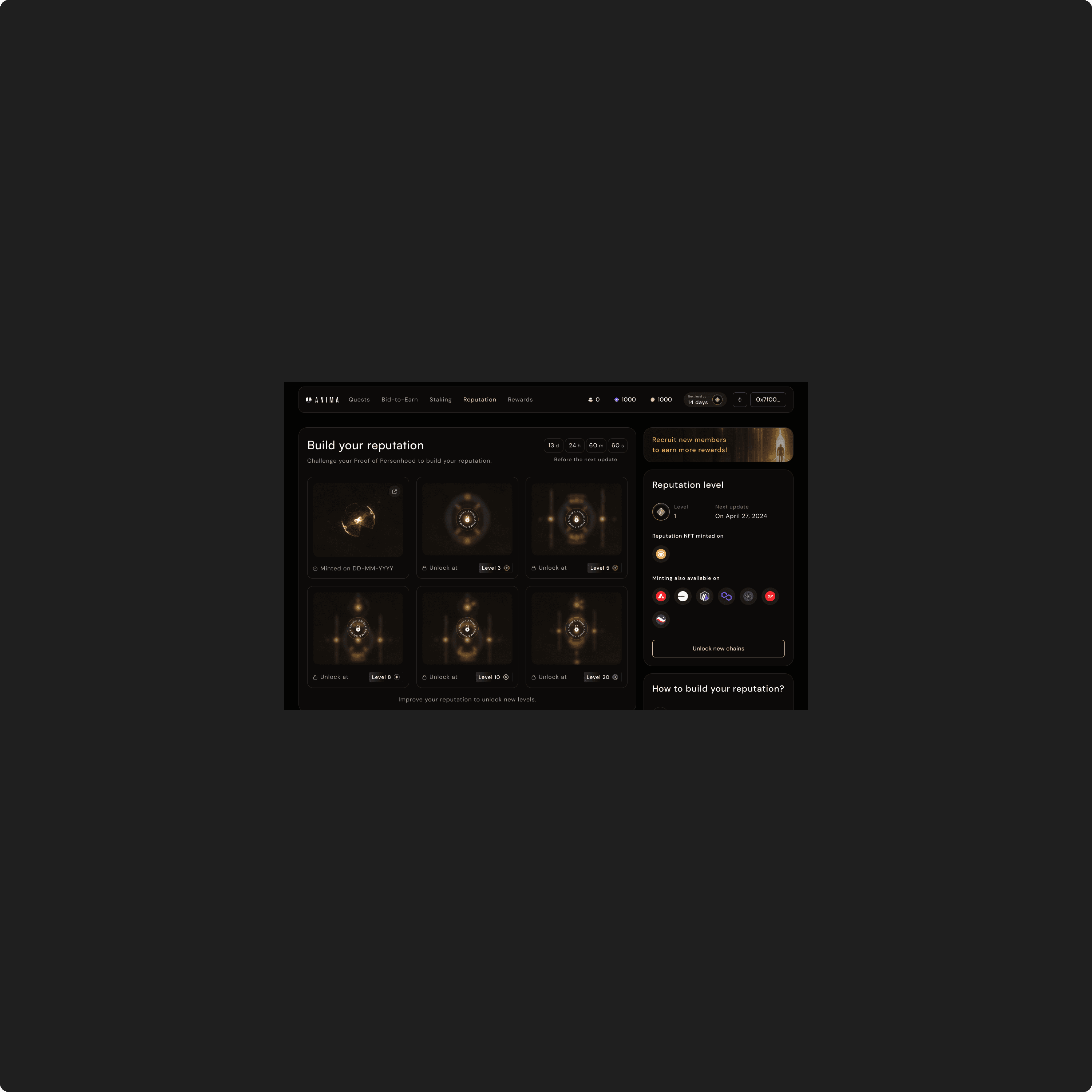 Anima is a Web3 dApp designed to help users discover new crypto projects through interactive quests. It addresses a critical challenge in the crypto ecosystem: ensuring user authenticity. To guarantee that only real individuals can participate, Anima is built on Proof of Personhood (PoP) — a system that verifies individual uniqueness. The main objectives were to create an intuitive, scalable platform while ensuring that the onboarding and payment process wouldn’t become a barrier to adoption.